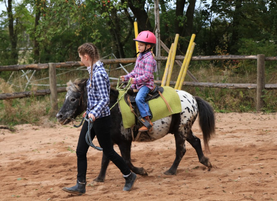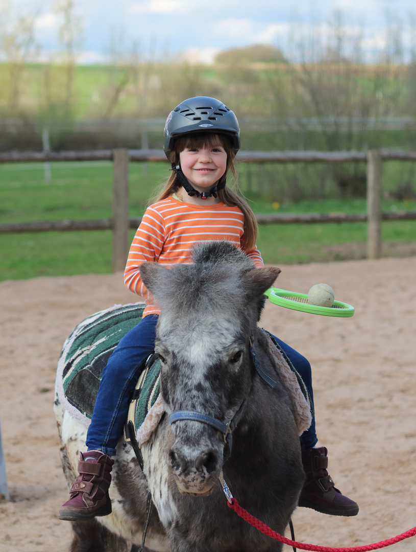 In der Shettygruppe erarbeiten wir in kurzen Einheiten auf unseren Ponys die Balance und das Vertrauen zum Pferd. Leichte Übungen, später auch leichte Voltigierübungen sollen die Kinder langsam ans Reiten gewöhnen. Natürlich dürfen auch geführte Ausritte durch die schöne Natur dabei nicht fehlen. Die Kinder lernen bereits ihre Pferde richtig zu putzen und auch zu führen.